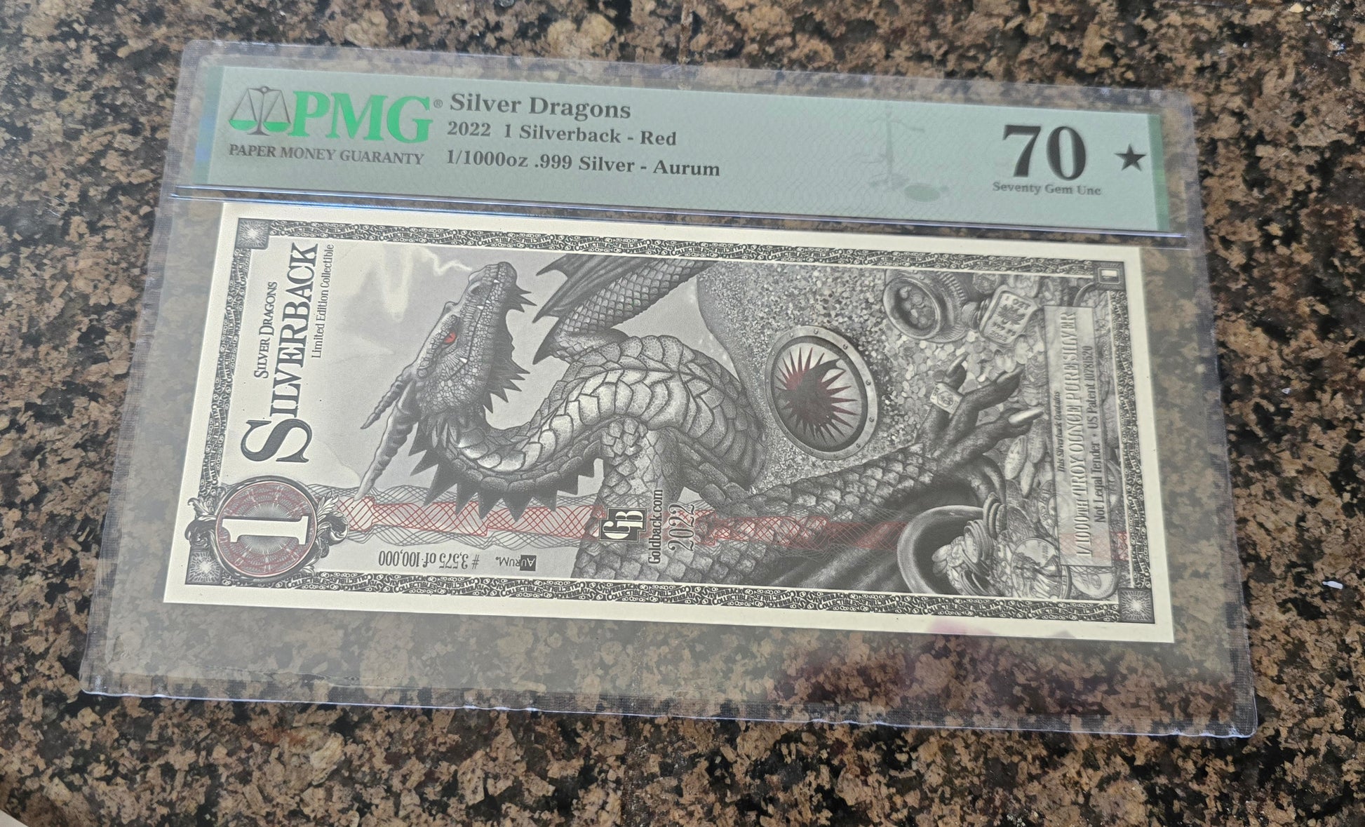 1 silver back note like goldback but silver silverdragon PMG 70 UNC 2022